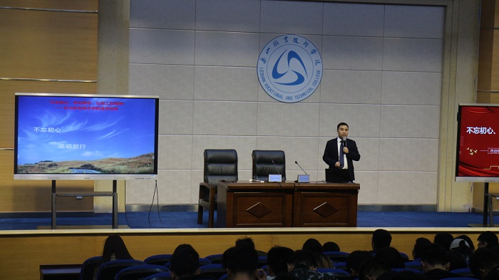 宣讲会上,朱仲强以“不忘初心、牢记使命,弘扬工匠精神”为主题,讲述了近20年来如何把自己的理想同企业的发展紧密地联系在一起,与大家分享了开创多室袋技术的艰辛,在缺材料、缺设备、缺技术、缺人员的情况下如何带领团队从零起步,攻破技术难关、掌握核心技术、自主研发,突破了弱焊技术、制袋技术,灌封技术、包装技术等生产技术。随后,朱仲强结合自己的个人经历与大家交流了如何在大学3年制定自己的职业目标与成长规划,朱仲强希望同学们树立正确的价值观,刻苦学习知识、技术,加强技能训练和劳动实践,努力成长为中国制造、民族复兴的栋梁之材。