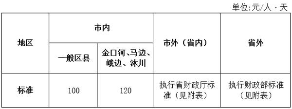 第十七条 出差人员伙食费补助标准见下表: