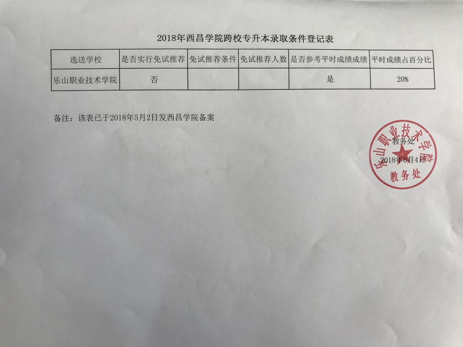 附件2 2018年西昌学院跨校专升本录取条件登记表