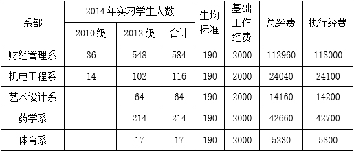 表1 2014年校外实践教学包干经费明细表