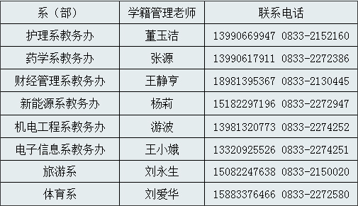 处理办法:联系学生所在系(部)学籍管理老师,联系方式见表1。