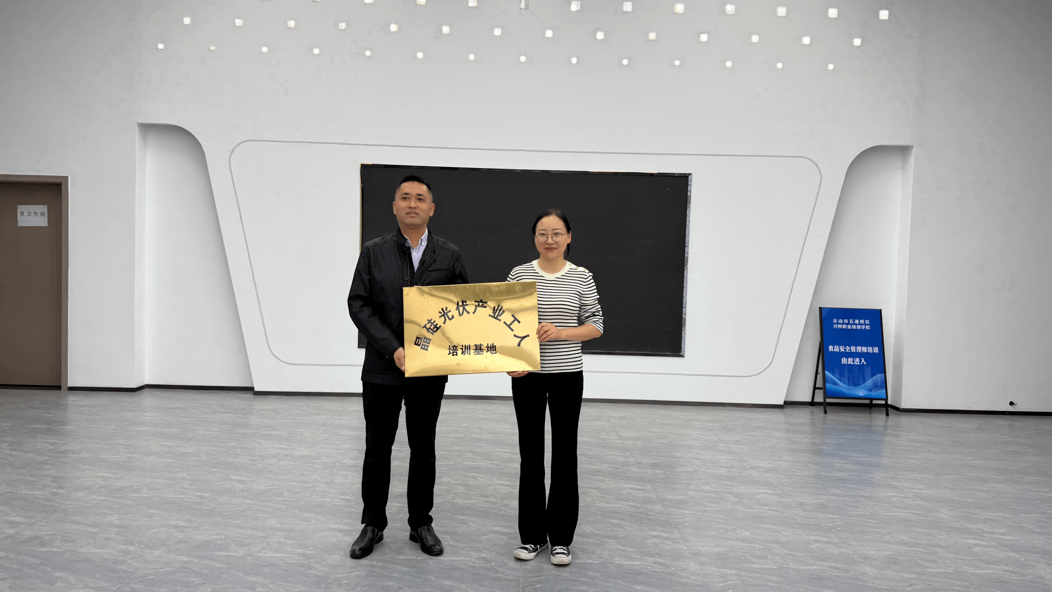 经过充分协商,双方在培训项目开发、师资互聘、学员招募、技能认定等多个方面达成合作意向。最后,在与会人员的共同见证下,彭媛媛与汪宜宾共同为“晶硅光伏产业工人培训基地”揭牌。
