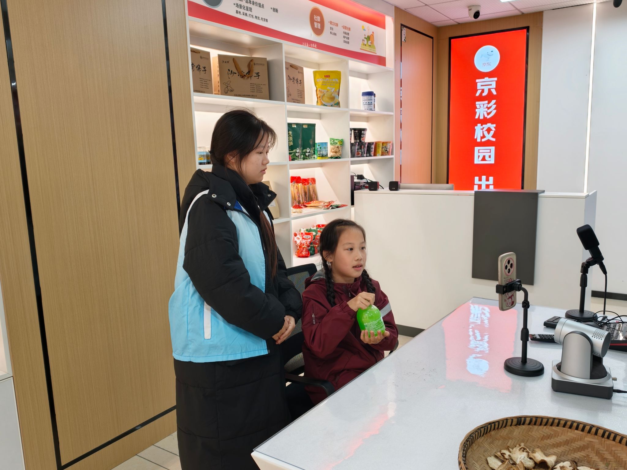三年级胡同学在镜头前高高举起选品,自信地说:“我要让屏幕前的叔叔阿姨都看清楚!”他兴奋地分享,“做直播让我明白,做事要多考虑别人的感受。”