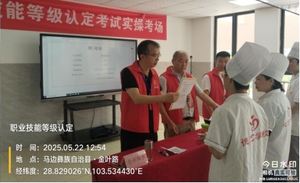 2025年5月22日,文化旅游学院烹饪专业教师刘海应邀参加乐山嘉州美食文化研究院在马边公共实训基地举行的西式面点师职业技能等级认定,乐山市德艺学校在马边的培训班学员共18人分两轮参加了西式面点师五级的职业技能等级认定考核。