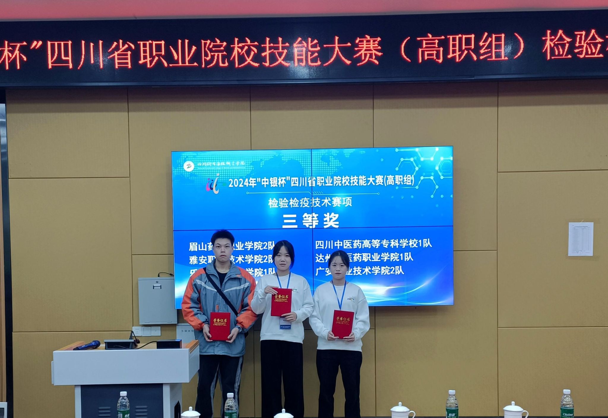 2024年12月15日四川省职业院校技能大赛-检验检疫技术竞赛在四川卫生康复职业学院圆满落幕,我院医学检验技术学生在比赛中获得了团体三等奖。