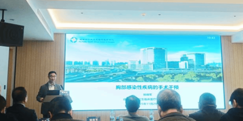 本次培训学术氛围浓厚,内容聚焦前沿。自贡市第三人民医院余南彬教授开幕致辞后,来自四川大学华西医院等医疗机构的专家学者先后进行专题分享。蒲强教授系统回顾了华西医院100例肺移植的临床经验;王一帆教授围绕肺癌综合治疗的质量控制分享了实践观点;蒲江涛教授则针对T1a期非小细胞肺癌的治疗策略与临床挑战作了细致解析。此外,姚晓军、张春银、庄翔、马林、陈嵬等教授分别就胸部感染性疾病手术策略、难治性肺恶性肿瘤的核素治疗、纵隔肿瘤诊治、复杂胸外科手术技巧,以及EGFR阳性患者辅助靶向治疗等热点问题展开深入讲解。余南彬教授还专题介绍了胸膜固定术在预防食管癌术后并发症中的应用价值。
