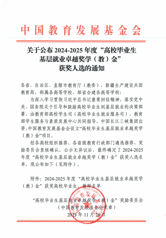 BV伟德官方网站学生冯鹏获2024-2025年度“高校毕业生基层就...