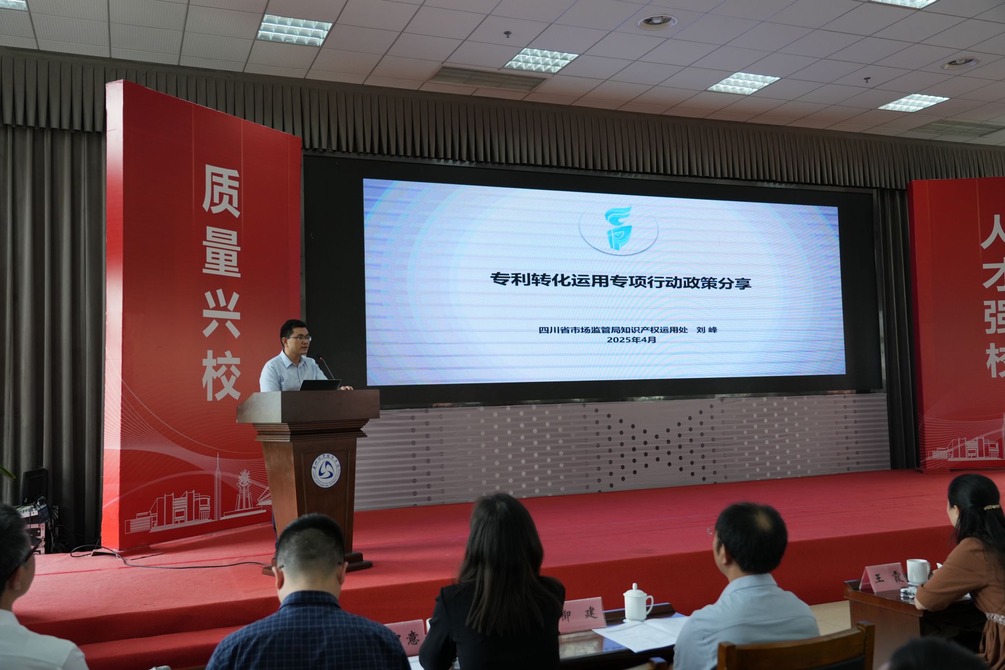 4月23日,由四川省市场监督管理局指导,乐山市市场监督管理局、乐山市科学技术局主办,BV伟德官方网站承办、乐山国家高新技术产业开发区产教联合体协办的 “校企携手・协同创新” 乐山市知识产权校企对接交流会在BV伟德官方网站顺利举行。此次活动作为2025年全国知识产权宣传周系列活动的重要组成部分,旨在搭建校企合作桥梁,推动专利转化运用,助力科技创新与产业升级。来自省、市相关部门领导、高校专家学者、企业代表等150余人参加会议。