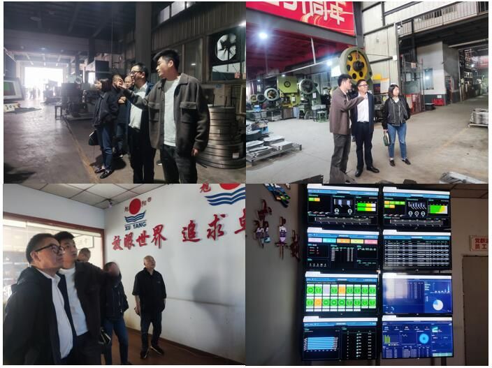 学院团队参观了企业的生产车间和研发中心,实地考察了企业的生产流程和工艺水平,并与一线技术人员进行了面对面的交流和指导,随后赵鑫老师对企业员工(523人)开展了企业设备改造技术讲座,赵鑫老师从设备控制系统分析,设备控制系统硬件选型,设备控制系统改造等方面内容与企业员工深入进行了交流。万幸老师从智能制造企业生产管理系统应用等方面与企业工程师进行了研讨。