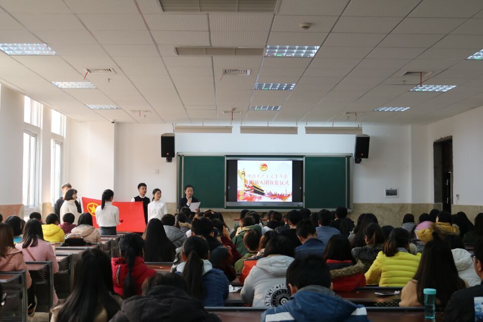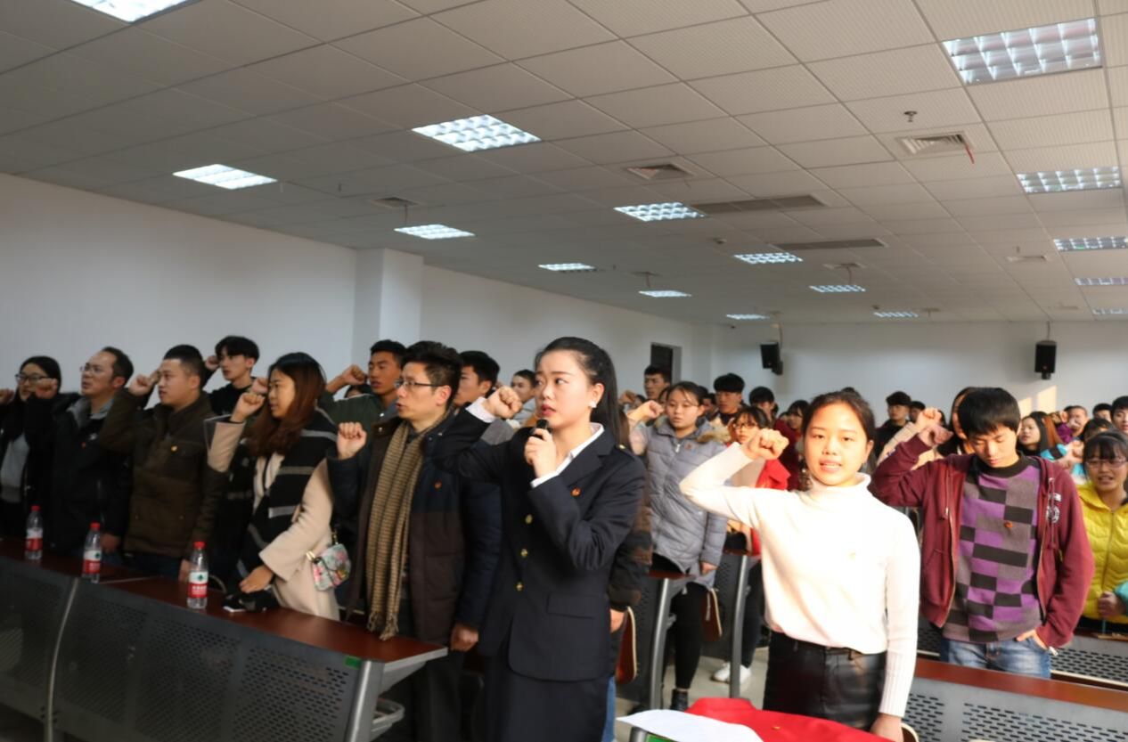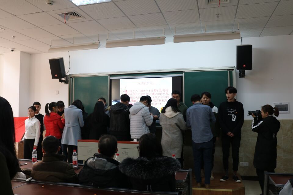 我院团委于2017年12月26日在2b104举办了新团员入团宣誓仪式。出席本次仪式的有学院团委副书记王渊明,学院团委老师郭胜男,学院团委老师魏莉鸿,以及各系代表和100名新团员,我系共有10名新团员参加此次仪式。