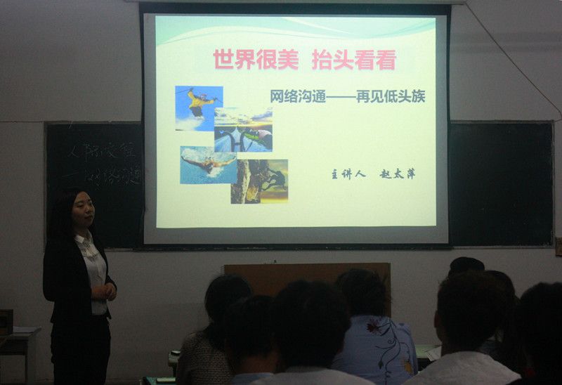 2017年4月16日星期日晚19:30,由赵太萍老师组织酒店16-1班,在综合楼2楼多媒体教室开展了一堂别开生趣的“网络沟通——再见低头族”的德育公开课,参加此次公开课的人员有各班辅导员,以及酒店16-1班全体同学。
