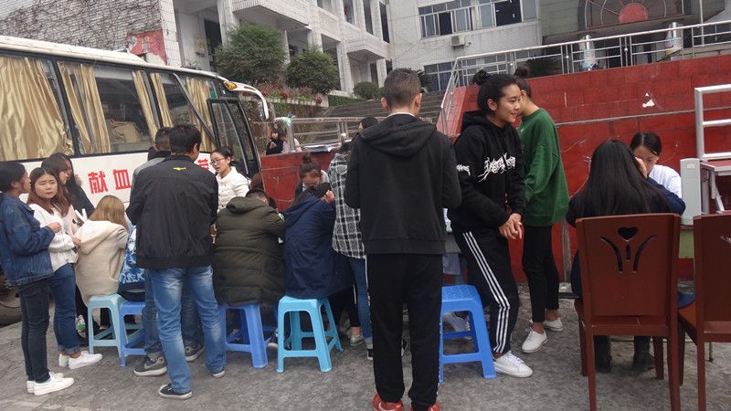 给同学们提供一个奉献爱心的平台我系爱心社于11月16日中午十二点整协助乐山市中心血站在操场上举行了一次无偿献血活动。