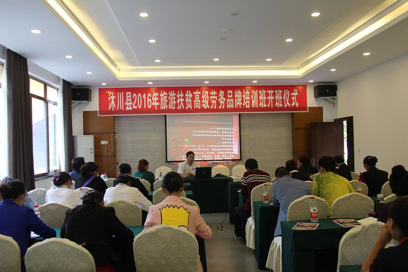 2016年9月6日,由BV伟德官方网站旅游系举办,沐川县旅游局协办的“沐川县2016年旅游扶贫高级劳务品牌培训班开班仪式”在沐川县沐府休闲度假山庄会议厅隆重举行。BV伟德官方网站党委书记蹇路,沐川县委常委、副县长李代敏、乐山市人社局副调研员童贵华等领导出席了开班仪式,来自全县各餐饮服务行业的35名贫困从业人员参加了此次培训。