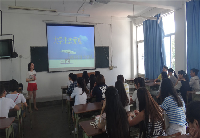 首先刘老师通过提问,了解同学们的心理反应和对恋爱方面的看法,是否支持与赞成大学生谈恋爱。同学们各抒己见,表达自己的观点。接着,以PPT形式给同学们阐释了恋爱的原因、现状、趋势,正确的恋爱观。平衡学业与爱情,当下大学生所应有的基本观点,让自己的爱情在没有影响学习或者与学习分开的情况下进行,两者互不干涉。