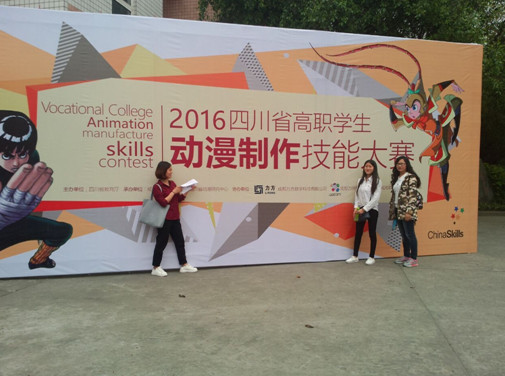 2016年4月14号,我院艺术设计系影视动画专业14-1班学生谯胜兰、洪娟、徐郦蜻三名学生,在龚静老师带领下到成都艺术职业技术学院,参加了由四川省教育厅主办的第一届“2016四川省高职学生动漫制作技能大赛”,我院参赛选手谯胜兰荣获三等奖。