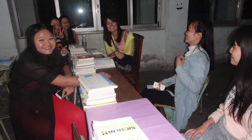 几位外国友人与同学们通过彼此介绍,了解了同学们在学校的一些生活情况及课后活动。同学们也介绍了一些学校的趣事和乐山的美食。