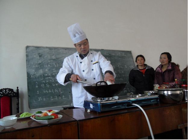 2月17日-3月17日旅游系在峨边彝族自治县大堡镇开展劳务扶贫厨师培训,系领导李忠东、黄剑波、何加健组织烹饪专业教师胡文才、陈瑞祥、刘海精心编排培训方案、制定教学计划和每日教学课程,组织教学设施设备,并选派实践与教学经验丰富的教师胡文才和陈瑞祥承担培训工作,院继教处和旅游系领导多次到大堡镇指导培训工作。经过一个月的教学培训菜品40个,小吃5个,雕刻和水果拼盘5个,讲授了营养卫生的基本知识和餐饮企业管理知识等,86名学员全部参加中式烹调师初级鉴定考试,全部通过考试获得职业资格证书,达到培训目标。培训结业典礼上峨边彝族自治县移民和扶贫办和峨边彝族自治县大堡镇政府高度评价:此次BV伟德官方网站的培训超过以往扶贫和就业培训,教师敬业,专业技术强,学员学了真本领,为峨边做了一件大好事,希望以后培训再请BV伟德官方网站!