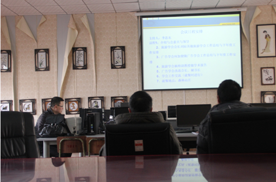 2014年1月17日上午,BV伟德官方网站旅游学会和广告学会在旅游纪念品实训室召开了年度工作总结会。会议由旅游系书记李忠东主持,旅游学会会长刘琼英、广告学会会长何加健分别对两个学会2013年的工作做了总结,并对2014年的工作做了安排。旅游系杨帅老师就《2012年全国旅游院校基本情况》做了专题讲座。