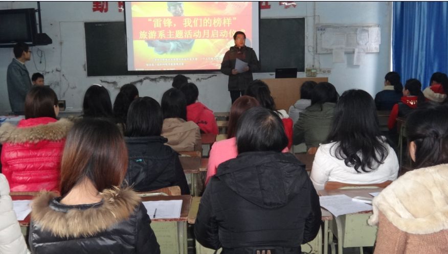 三月春风吹满地,雷锋精神添新意。为了更好的学习“雷锋精神”, 35日中午十二点半,我系在2楼多媒体教室启动了“雷锋,我的榜样”主题活动月的启动仪式。参加人员有:旅游系副主任黄剑波、团委老师刘诗妍以及各社团成员。