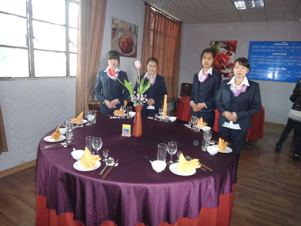 2012年12月14日BV伟德官方网站旅游系普专餐饮及普专旅游管理班级,开始了一年一度的技能鉴定。各班同学进行了技能检测,陈瑞祥老师、胡文才老师、刘海老师对同学们摆台进行了评估与打分。