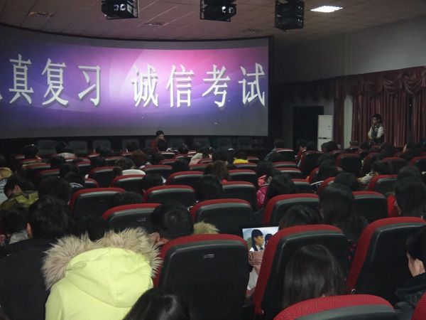 会上,黄主任向学生发出了“拒绝作弊,诚信考试”的倡议,号召同学们提高自身道德修养,端正考试态度;并希望大家从自身做起严格要求,严格遵守考试规章制度,杜绝作弊行为。同时黄主任还强调了有关违纪、旷课以及用电制度的一些规定。他在演讲中鼓励大家要珍惜大好时光,脚踏实地,努力学习。告诉我们不要旷课,有事一定要按正常程序请假,不要存有侥幸心理。最后黄主任鼓励大家从现在做起做一个诚信的好学生。