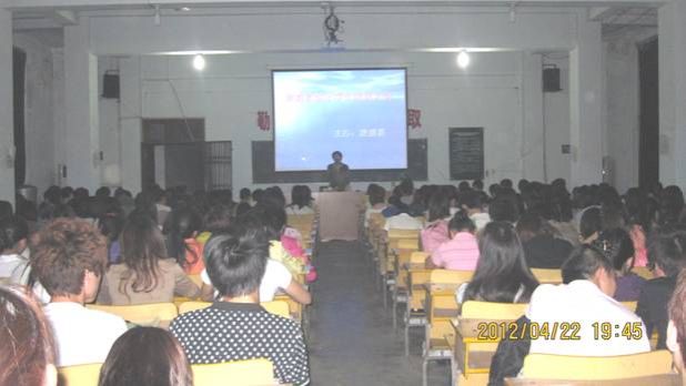 2012年4月22日晚7:30分,旅游系组织在四楼电教厅召开了争创省级示范高职院校动员会,会议由旅游系黄剑波副主任主持,各班辅导员参加了本次会议。