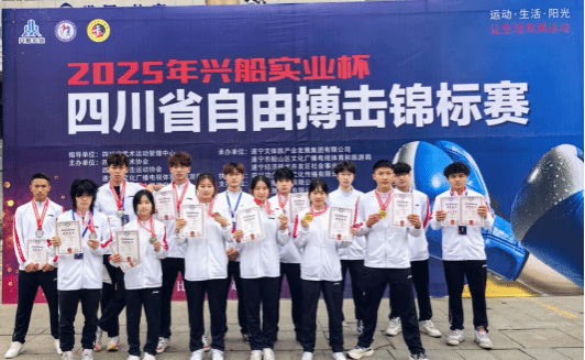 4月4日至6日,由四川省武术运动管理中心指导,四川省武术协会、四川省搏击运动协会主办的2025年四川省自由搏击锦标赛在遂宁市船山区体育馆举行,本次比赛汇聚了全省42家单位的860名运动员。伟德官网14名学生由体育学院负责人朱文彬带队,由代凌江、张繁两位教练指导参赛,最终斩获2枚金牌、7枚银牌的优异成绩,展现了伟德官网学子的卓越风采。
