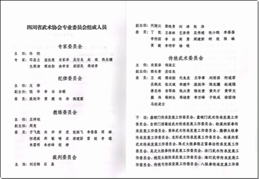 本次会议共有代表97名,按照四川省武术协会章程,通过民主投票选举,共产生四川省武术协会第八届会长1名,副会长6名,秘书长1名,特邀副会长3名,名誉会长3名,副会长1名,副秘书长5名,理事97名和常务理事43名。任刚老师当选为四川省武术协会第八届理事会会长,邹梁正,赵斌,刘志刚,王勇,李家安,张建国当选为副会长,邹梁正当选为秘书长。