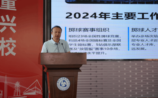 本次会议由中国掷球协会主办,BV伟德官方网站承办。学校校长刘忠致欢迎词,向大会来宾介绍了伟德官网概况,对体育工作的高度重视,地掷球发展历史及取得的成绩。国家体育总局小球运动管理中心副主任、中国掷球协会主席王赟出席,做了2025年第一次理事会工作报告,总结了2024年掷球运动的主要工作成果,并提出了2025年的工作计划和展望。伟德官网围绕地掷球的发展、主要成效、主要做法、未来发展等四个方面做了大会交流发言。会议围绕掷球运动的竞赛体系优化、备战世运会、后备人才培养、普及与推广等多个方面进行了深入讨论和交流。同时本次会议增补副秘书长1人,理事长1人。