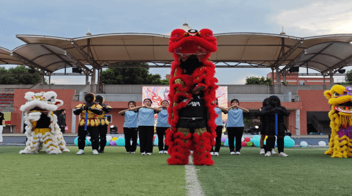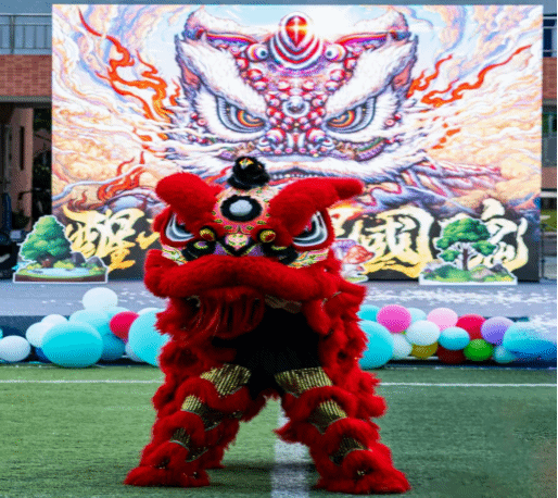 晚会现场,灯光璀璨,气氛热烈。随着激昂的鼓点声响起,舞狮表演率先登场。醒狮身披绚丽的狮皮,在同学们的欢呼声下,时而昂首向天,时而低头回顾,时而活泼跳跃,时而威风凛凛。伴随着锣鼓节奏的变化,醒狮做出舔毛、抓痒、采青等一系列惟妙惟肖的动作,活灵活现地展现出狮子的神态与习性。当三只醒狮相互配合,完成高难度的攀爬、跳跃动作时,更是将现场气氛推向高潮,欢呼声、喝彩声此起彼伏。