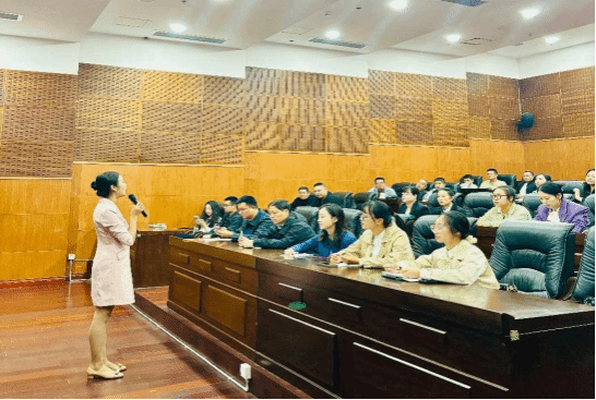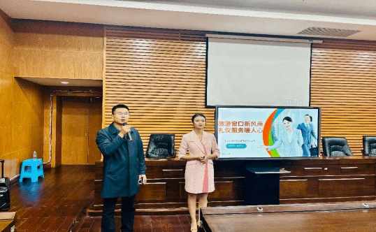 培训中,鲜老师结合景区服务场景,围绕“仪态规范、沟通技巧、文化传达”三大核心展开。通过理论讲解、情景模拟和互动纠错,重点指导讲解员的站姿、手势、表情管理及跨文化交流技巧,强调以“专业、亲和、尊重”传递景区文化内涵。参训人员积极参与实操演练,现场氛围热烈。