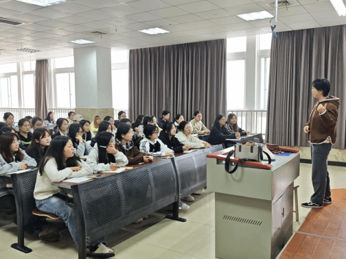 逯春梅老师从端正入党动机到如何书写“申请入党书”,如何确定“入党积极分子以及“发展对象的确定与考察”等根据发展党员25个流程展开详细讲解。大家按组依次坐在位置上聆听党的知识,同学们认真做笔记、认真学习,逯老师与同学们互动频繁,激发出浓厚的学习热情。