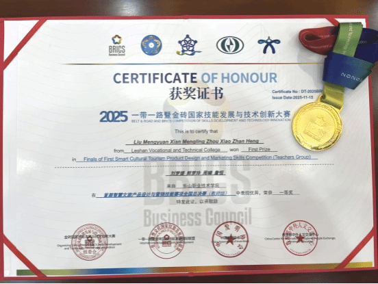 11月15日,2025年“一带一路暨金砖国家技能发展与技术创新大赛之首届智慧文旅产品设计与营销技能大赛”全国总决赛在南宁市第六职业技术学院落下帷幕,伟德官网文化旅游学院选派的教师代表队(参赛教师刘梦媛、鲜梦玲、周啸、詹恒)从全国百余支参赛队伍中脱颖而出,荣获全国教师组一等奖,学校荣获“最佳组织奖”。
