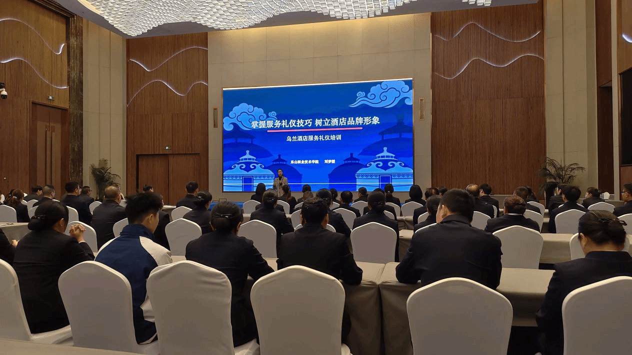 为充分发挥高校专业育人优势,践行社会服务职责,助力文旅行业服务品质提升,4月3日,我院礼仪老师刘梦媛受邀前往峨眉山乌兰酒店,为酒店全体工作人员开展了一场专业、实用的礼仪服务专项培训,以专业礼仪知识赋能酒店服务升级,展现了我院教师扎实的专业素养与积极的社会服务精神,此次培训共100人。