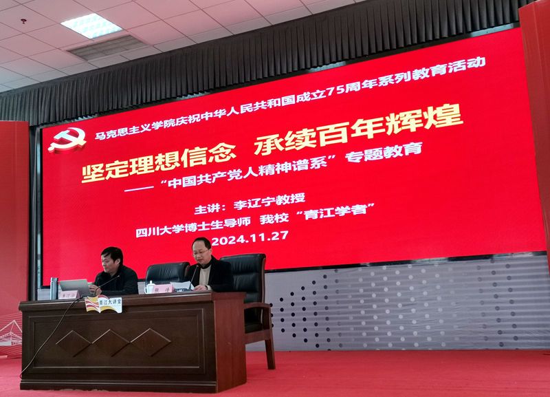 2024年11月27日下午,马克思主义学院在学术交流中心3004会议室举行中国共产党人精神谱系专题教育。本次活动由学校党委副书记张佳主持,邀请伟德官网“青江学者”、四川大学博士生导师李辽宁教授作报告,马克思主义学院思政课教师和各二级学院马列社团学生代表180余人参加。
