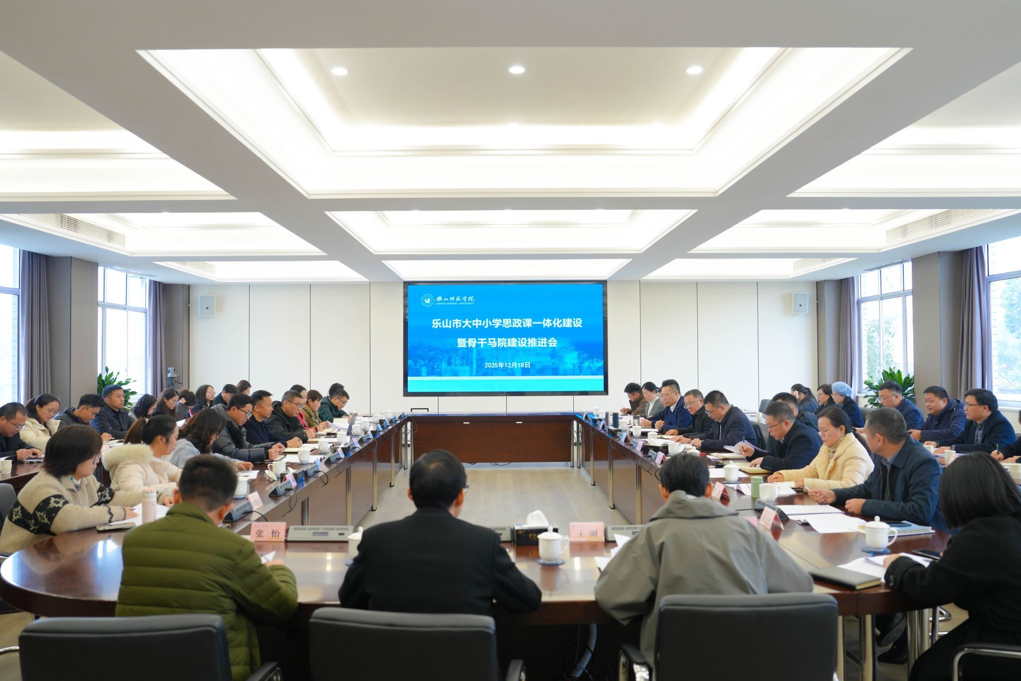12月18日,乐山市大中小学思政课一体化建设暨骨干马院建设推进会在乐山师范学院召开。全市大中小学思政课一体化共同体成员单位、教育主管部门及相关院校领导围绕思政课共建共享、协同育人展开深入交流。马克思主义学院副院长刘倩、思政教师向雅丽参会。