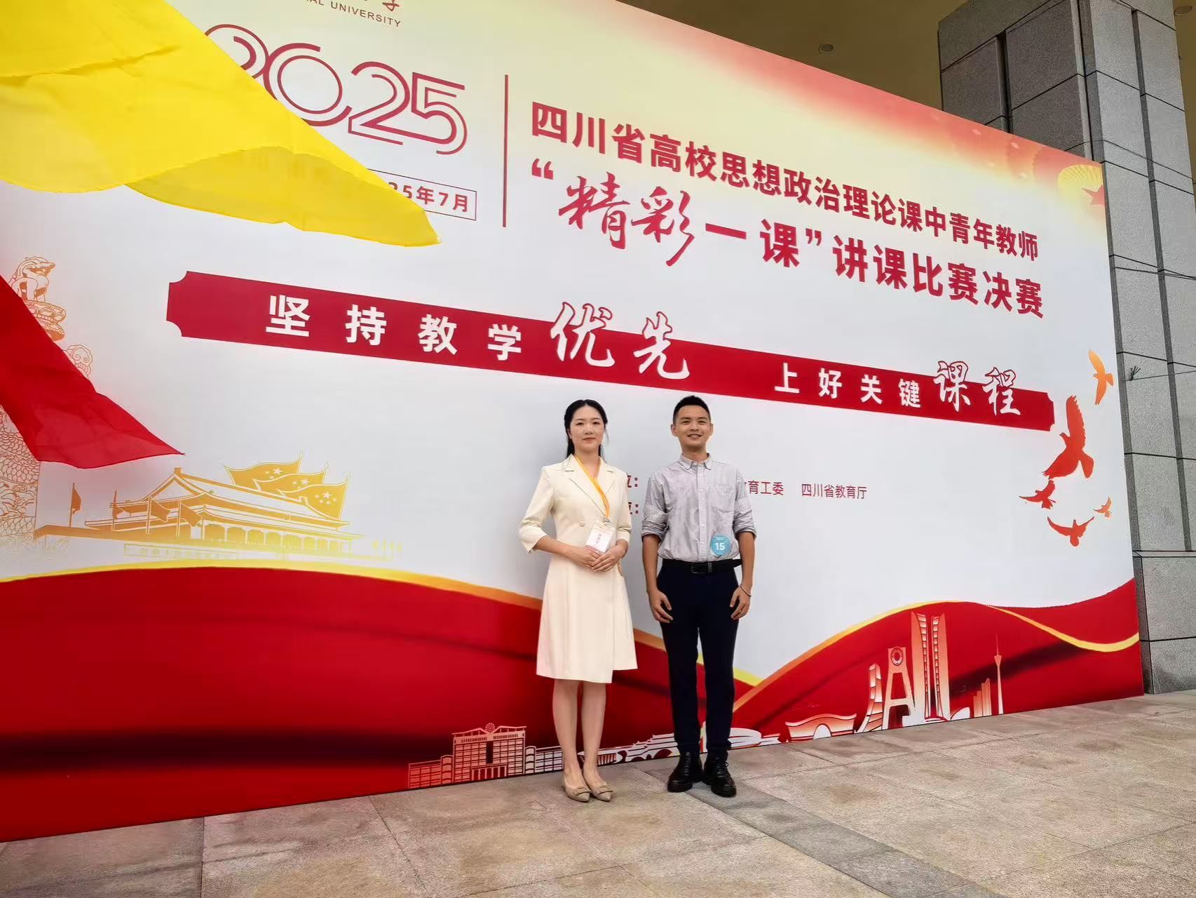 7月21日,四川省2025年思想政治理论课中青年教师“精彩一课”讲课比赛决赛在西华师范大学举行。经过激烈角逐,伟德官网马克思主义学院吴琼阳、徐红梅两位老师从来自全省多所高校的182位决赛选手中脱颖而出,分别荣获思想道德与法治(高职高专组)特等奖、毛泽东思想和中国特色社会主义理论体系概论(高职高专组)一等奖。