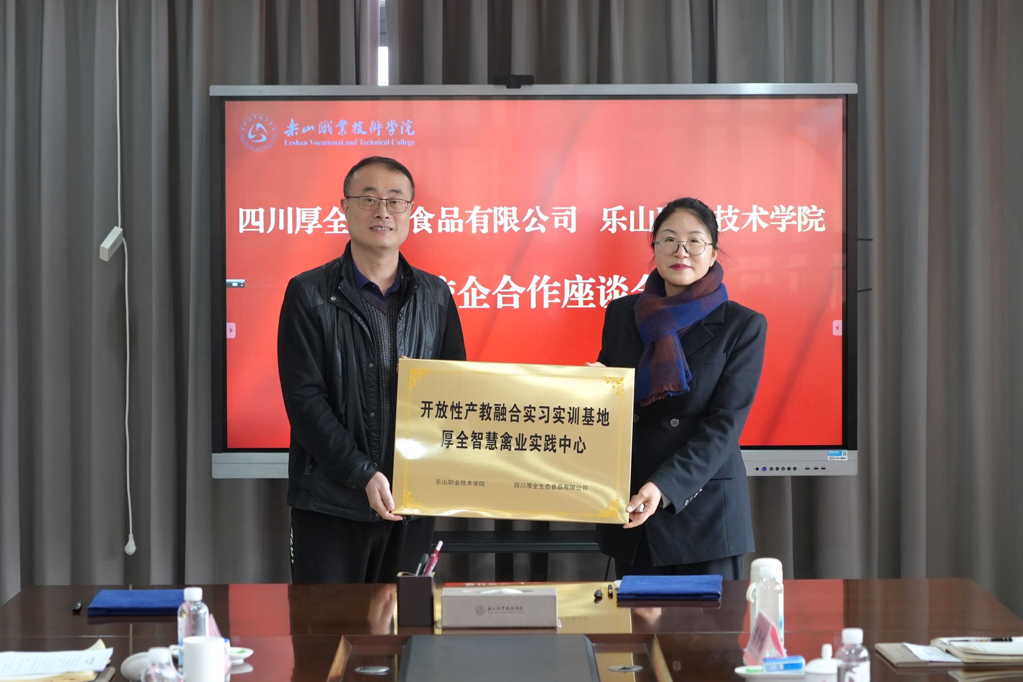 会上,双方正式签订校企合作协议,并举行“开放性产教融合实习实训基地厚全智慧禽业实践中心”授牌仪式。围绕“厚全智慧禽业订单班”建设,校企双方就班级组建、实训基地建设、教学资源开发等核心问题展开深入交流,同时结合厚全生态乐园打造计划,针对畜牧养殖、电商、文旅领域人才联合培养、实习就业联动等事宜达成多项共识。
