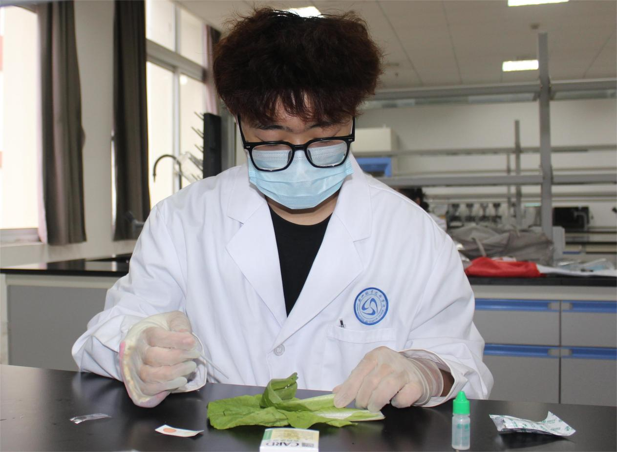 活动开始前,两位指导老师围绕食品安全重要性、样品采集要求、快速检测样品技术要领等进行了详细讲解,随即带领同学们采集了瓢儿白、香菜、小白菜等8类样品。在食品安全检测实验室,两位指导老师带领同学们对所采样品的过氧化值、农药残留、酸价等指标进行了检测和认真分析,并将检测结果向一号食堂进行了反馈。