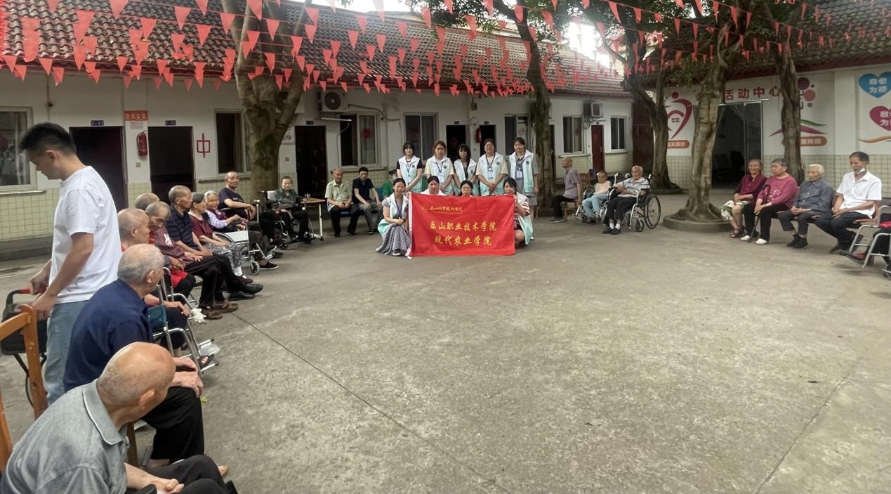 为加强青年学生思想道德建设,弘扬中华民族尊老、敬老的传统美德,努力营造社会和谐的良好氛围,现代农业学院“关爱老人 奉献爱心”实践团于2024年7月8日在乐山市市中区顺江养老院开展“爱老敬老”实践活动。本次活动共10名同学参与。