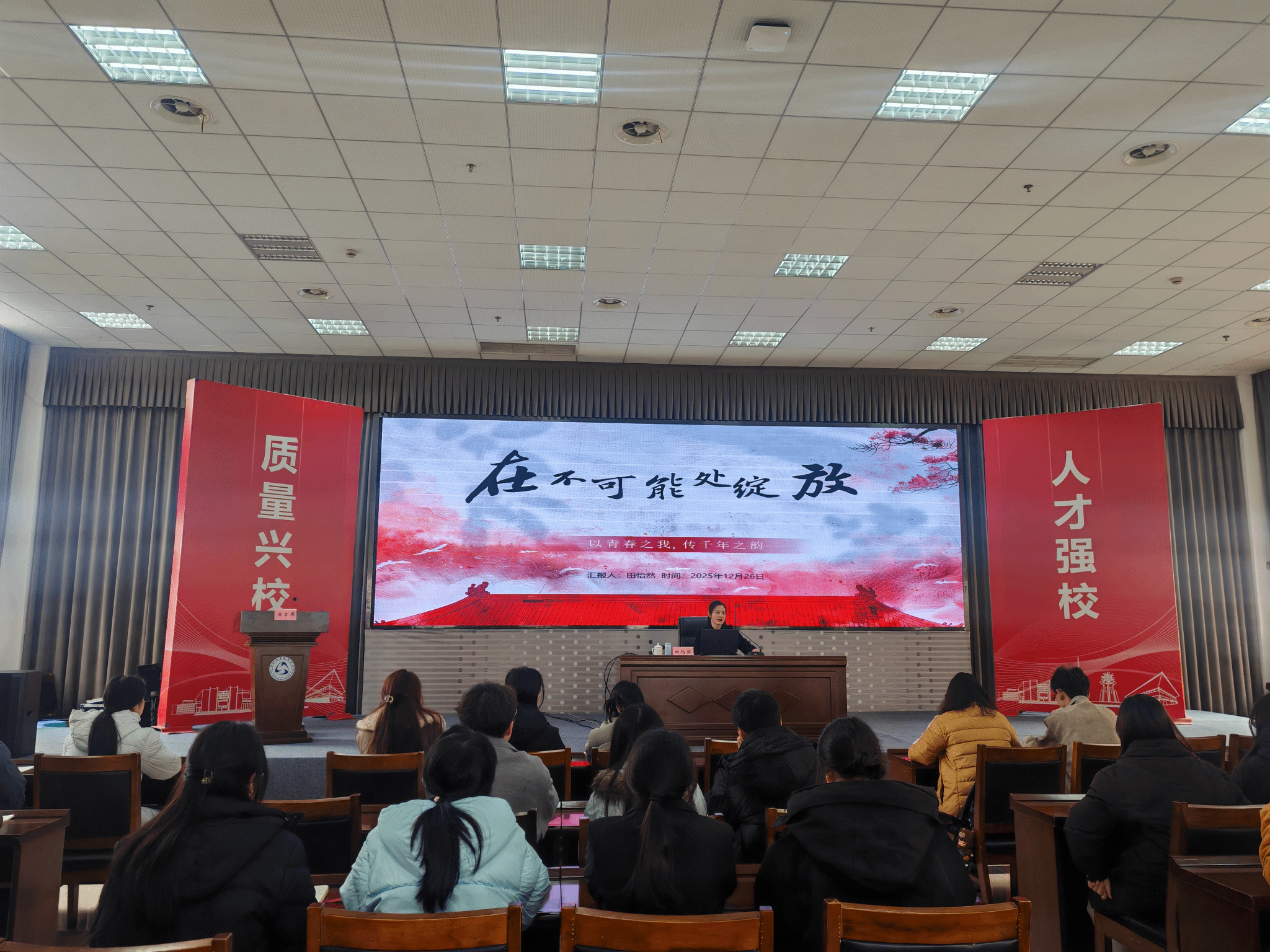 2025年12月28日下午两点,四川轻化工大学团委副书记、健身气功世界冠军田怡然应邀带来“在不可能中绽放——以青春之我,传千年之韵”的主题分享。
