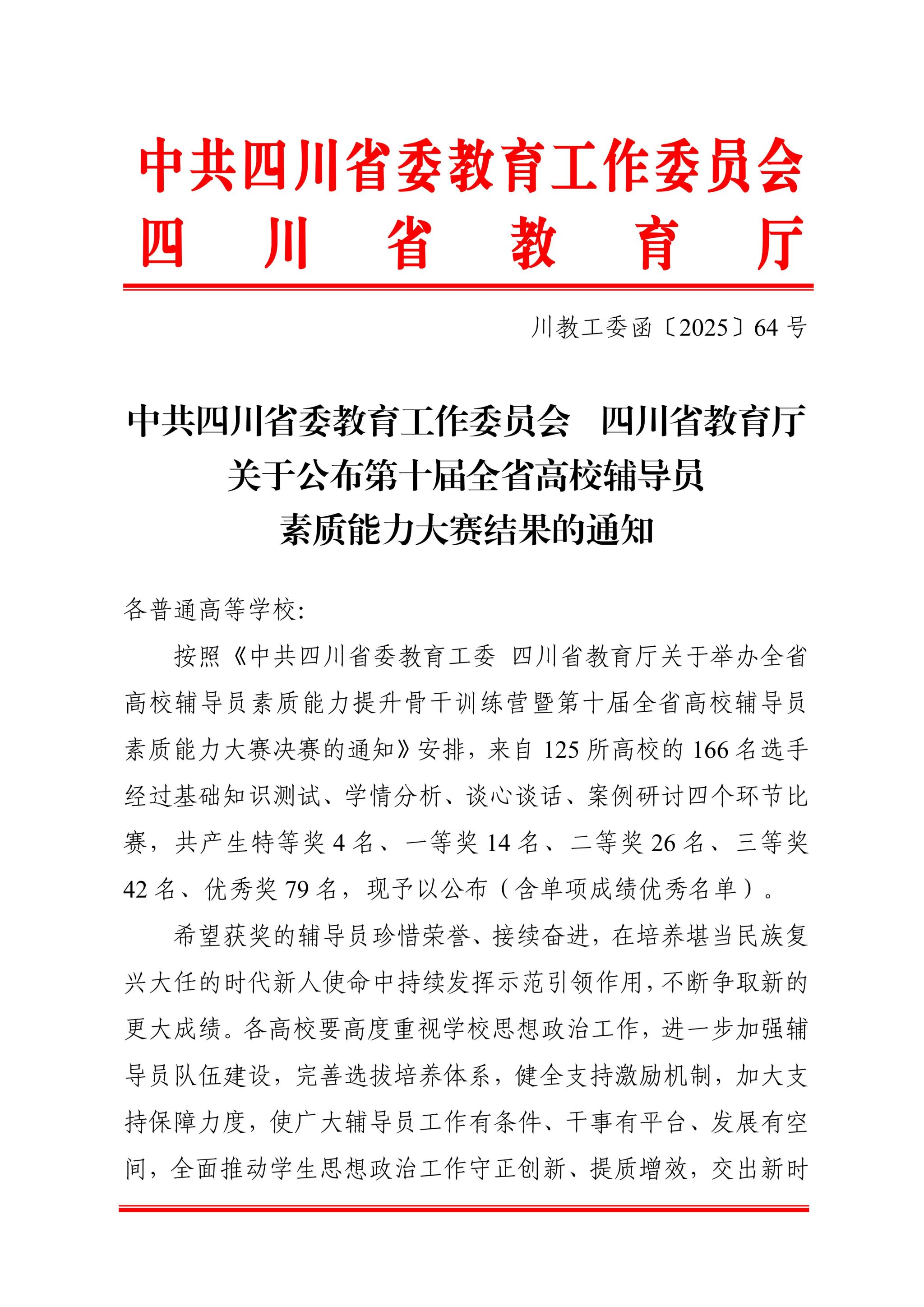 近日,第十届四川省高校辅导员素质能力大赛决赛在西华大学圆满落幕。本次大赛由中共四川省委教育工委、四川省教育厅主办,吸引了全省百余所高校的优秀辅导员参与。BV伟德官方网站选送的辅导员彭诗洁老师,凭借其扎实的日常积累和稳定的临场发挥,最终荣获大赛优秀奖。