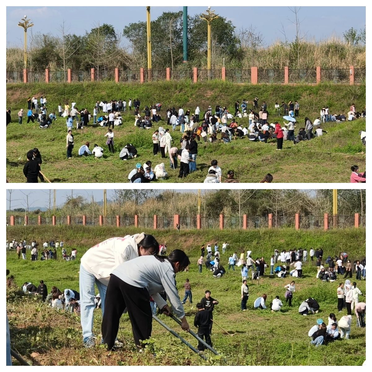 作为此次活动的服务保障力量,校学生会生活部的成员们提前到岗、分工协作,协助学工部完成肥料分发、工具清点和现场引导工作。他们既是连接学工部与各学院的“桥梁”,也是劳动现场最忙碌的“勤务兵”,用实际行动诠释服务育人的理念。