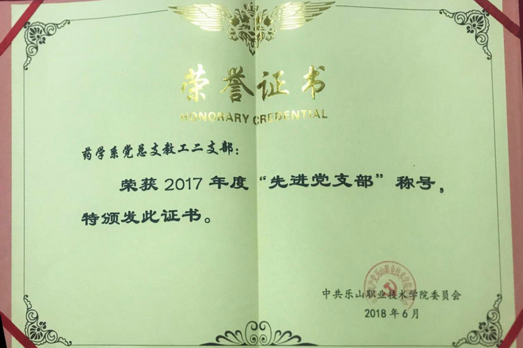 两个支部连续三年被学院评为“先进党支部”,2018年教师团队被四川省人社厅、教育厅授予“四川省教育工作先进集体”称号,2019年入选四川省第二批“职业院校紧缺领域教师技艺技能传承创新平台”名单,2019年教工二支部入选教育部第二批“全国党建工作样板支部”培育创建名单。2019年立项乐山市社科联课题《高职院校基层党建促业务工作实践研究》。