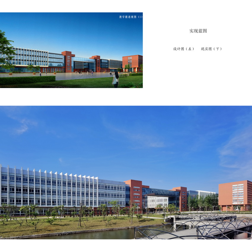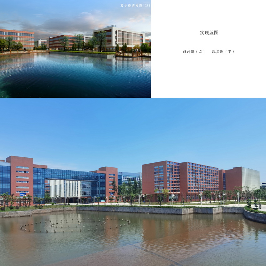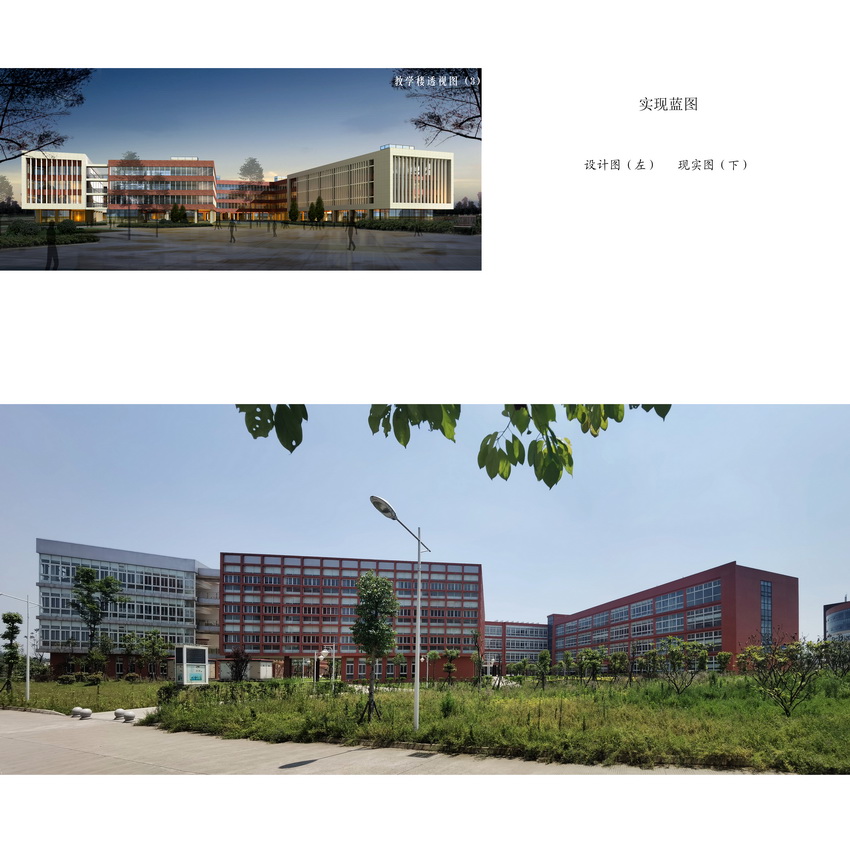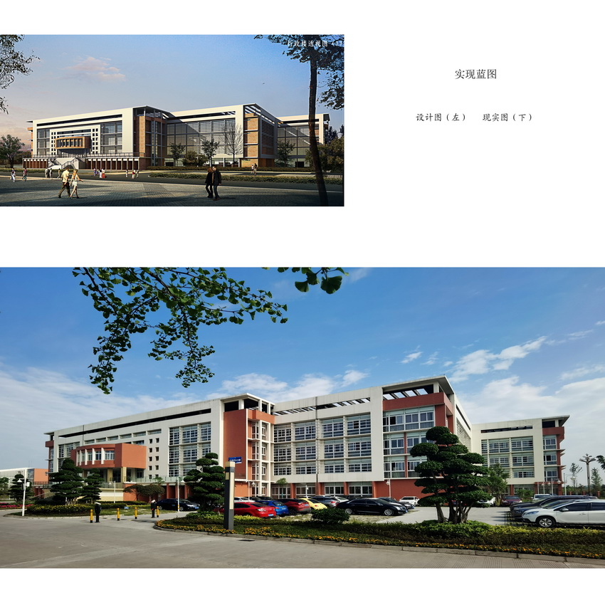 新校园设计注重乐山历史文化的传承及氛围,结合现代职业教育特点,建筑房屋设计灵活多样,采用校园信息化数字化管理,结合专业特色,综合利用太阳能光伏技术、水源式热泵技术和充沛的青衣江水资源,为校园整体实现光源、制冷及供暖供应,同时兴建了环形地下综合管廊,充分体现了绿色、环保、智慧化校园理念。