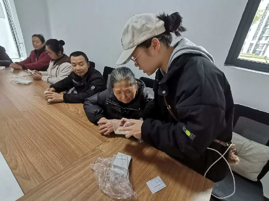 活动伊始,志愿者们精心准备了活动所需用品,并准时搭乘交通工具抵达长征社区。抵达后,志愿者们首先通过问卷调查的形式,深入了解了社区老人在安全用药方面存在的问题。问卷结果显示,老人们普遍存在重复用药或忘记用药的情况。针对这一问题,志愿者们向老人们赠送了智能药盒,并耐心指导他们如何正确使用,以避免未来再发生忘记用药等困扰。随后,活动进入了轻松愉快的健身环节。志愿者们播放了八段锦的视频,老人们认真观看并跟随视频中的动作进行练习。在志愿者们的带领下,老人们不仅学会了八段锦的基本动作,还体验到了运动带来的愉悦和放松。紧接着,志愿者们通过图文的形式,向老人们科普了“三高”(高血压、高血糖、高血脂)的常见问题及防治知识。同时,他们还根据老人们的身体状况,推荐了适合“三高”患者的饮食建议,帮助他们更好地管理自己的健康。活动在一片欢声笑语中圆满结束。志愿者们与老人们合影留念,共同记录下这一温馨而美好的时刻。