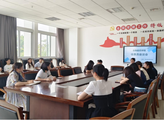为进一步提高教学质量,交流解答同学们在学习、生活中出现的问题,2024年4月16日13:00生物医药学院召开了4月信息员座谈会。学院党总支副书记黎缘、副院长朱链链,督导干事蒋晓娟,各班信息员参会。
