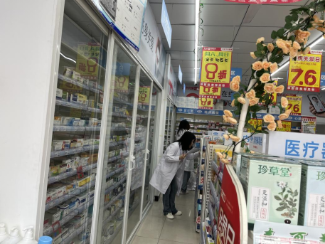 为了让同学们通过实地见习,深入了解药品销售与服务流程,提升专业技能和实践能力,同时加强医药行业人才培养,促进行业健康发展。2024年5月12日9点至17点,药学专业药品营销方向1班和2班在校外的四川高济海棠药堂零售连锁有限公司的各药店进行了《药品购销》课程的实践见习活动。