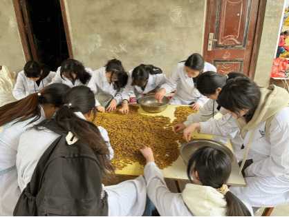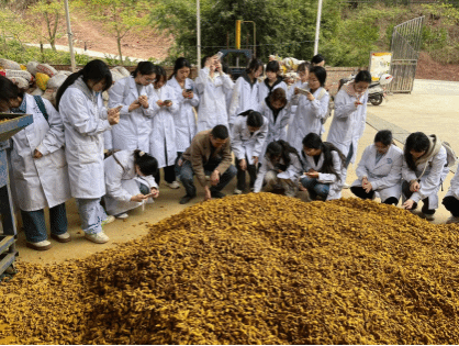 为让学生更加直观深入地了解中药材加工的过程,进一步深化产教融合、创新人才培养模式,3月28日,生物医药学院组织2023级中药学专业2个班级学生,前往犍为百木中药材种植专业合作社开展专业实践活动。本次活动由学院副院长(主持行政工作)李喜安带队,郑佳、兰英、谢雨芩和蒋晓娟4位教师共同参与指导。