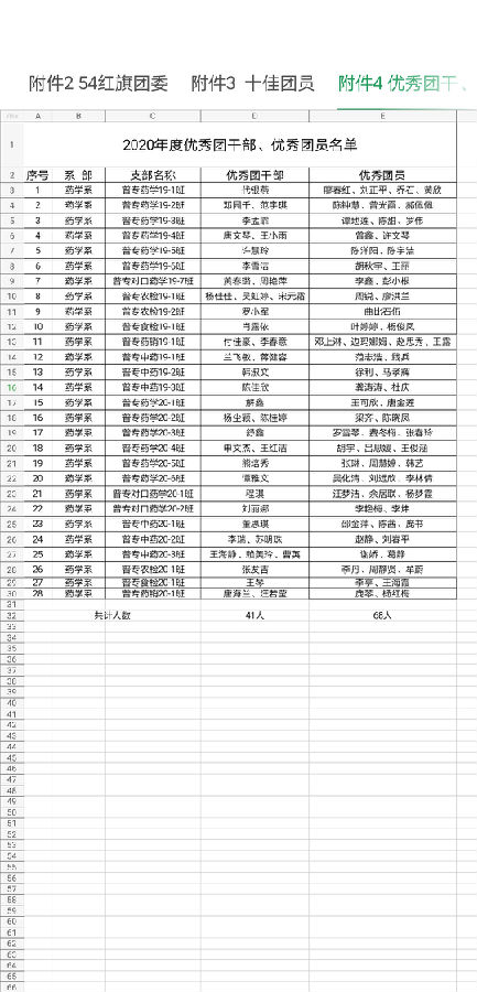 为表彰先进,树立典型,激励全系团员青年和学生干部深入贯彻落实科学发展观,加强基层团组织建设,推动学院团学工作的发展,更好地发挥党的助手和后备军的作用,为当好推动科学发展、促进社会和谐的排头兵贡献青春力量。药学系系团委(总支)组织我系各班团支部于2021年3月17日至4月12日在药学系范围内采取团员民主评议的方式,拟推荐普专药学19-5班谯娟为十佳团员,拟推荐黄春璐、罗小军、宋元霜等41人为优秀团干部,拟推荐刘正平、乔石、黄欣等68人为优秀团员,拟将中药19-2班团支部、药学19-5班团支部、药学19-7班团支部、中药20-3班团支部、对口药学20-1班团支部、药学20-4班团支部为先进团支部,拟推荐廖春红、刘泽、李鑫等32人为优秀青年志愿者,拟推荐龚涛涛、夏仕杰、曾鑫等27人为创新创业先进个人进行公示(名单详见附件),公示期三天,公示期间如对公示对象有异议,可通过书面材料、电话等形式,向系团委反映。